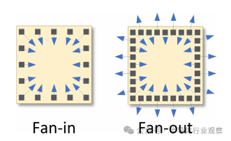 与此相反的是扇出,即一些引线远离芯片,使封装比芯片大(即使一些信号也扇入)。即使是单个芯片也有必要这样做,因为 PCB 设计规则要求芯片上的连接点之间的距离要比焊盘远得多。