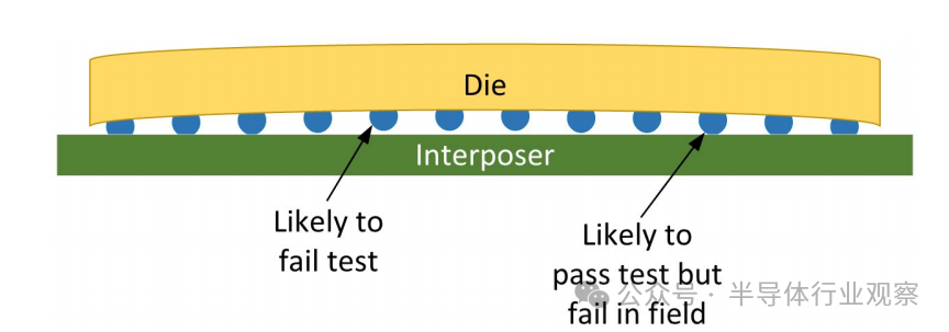 对于任何具有大量连接的芯片来说,共面性始终至关重要,例如BGA封装。如果芯片与其所安装的基板或中介层不共面,则某些焊球可能无法接触。这种情况会导致测试失败,并且器件无法交付给客户。但如果共面性差异不大,焊球可能会在某些焊盘上形成不良连接——这些连接在机械冲击或过多的热循环后可能会松动。