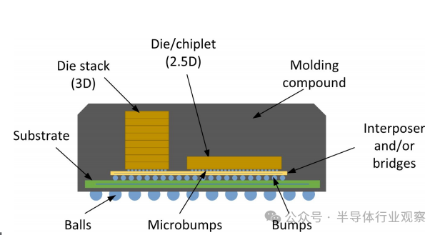 在这种讨论中,经常会提到 2.5D 或 3D 封装,这些描述指的是内部元件的排列方式。