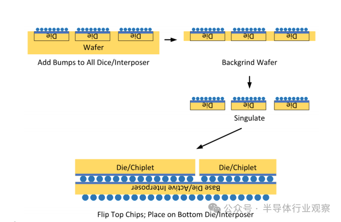 在将多个组件集成到先进封装中时,业界已开发出一种维度概念,虽然并非严格准确,但有助于描述封装中组件的排列方式。二维 (2D) 并不常见,但它指的是标准封装中的默认排列方式,即芯片直接放置在基板上。2.5D 是指将多个芯片布置在一个中介层 (interposer) 上。该中介层位于主基板上方,因此存在一些垂直方向的距离——相当于半维的距离。