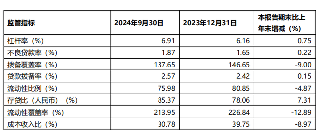 桂林银行2024年前三季度监管指标情况。财报截图