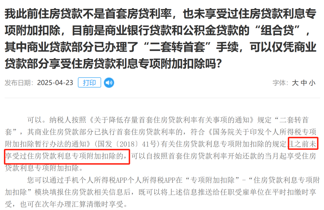 另外国税总局也明确了,“二套转首套”能不能抵扣个税。