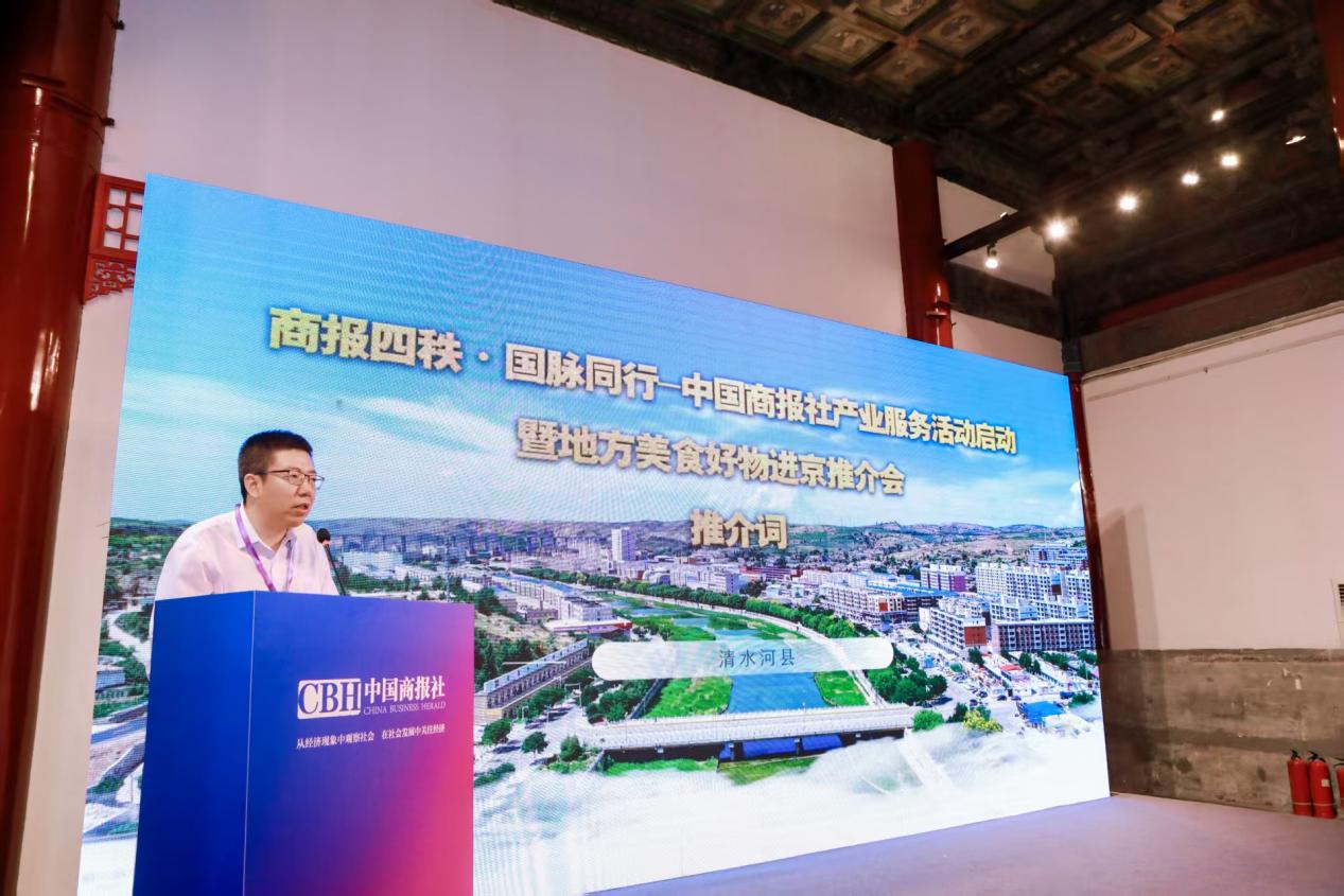 4月26日,由中国商报社主办的“商报四秩·国脉同行—中国商报社产业服务活动启动暨地方美食好物进京推介会”在京举行。清水河县委副书记李喜波代表清水河县,以“寻迹老牛湾·味归清水河”为主题,向全国推介当地独具魅力的地理标志产品与生态文化资源,展现乡村振兴实践成果。