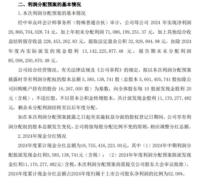 分红方面,格力电器拟向全体股东每10股派发现金红利20元(含税),2024年年度利润分配派发现金股利约111.7亿元。结合中期分红,2024年度累计现金分红约167.55亿元。