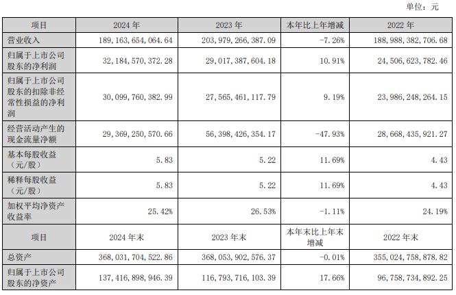 27日,格力电器公布年报。2024年,公司营业收入约1891.64亿元,同比减少7.26%; 归属于上市公司股东的净利润约321.85亿元,同比增长10.91%。