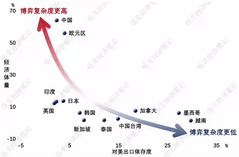 注:经济体量=本经济体GDP/美国GDP;对美出口依存度=对美出口/本经济体GDP。