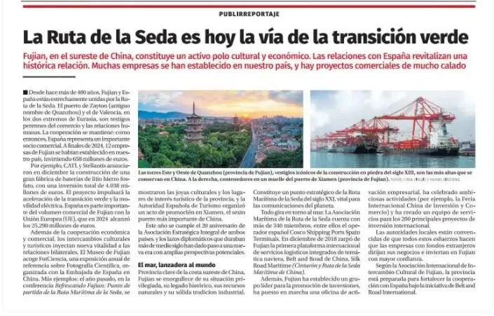 此次福建政商代表团出访期间,西班牙主流媒体《国家报》还发文称赞了福建经济和文化成就。