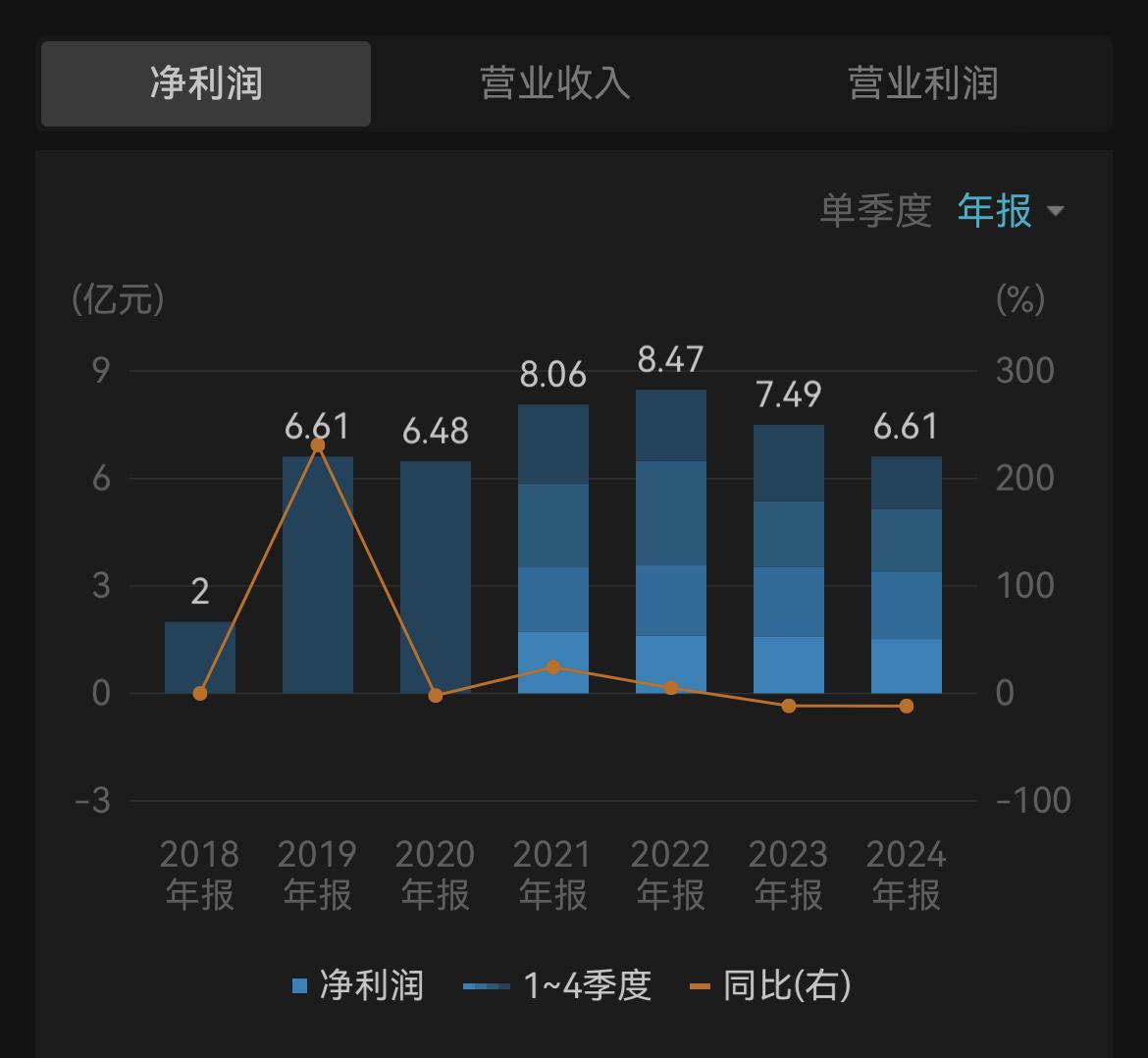 这已是公司净利润持续下滑的第二年,扣非后净利润持续下滑的第三年,相较于2022年8.47亿元的净利润,2024年净利润减少了约2亿元。