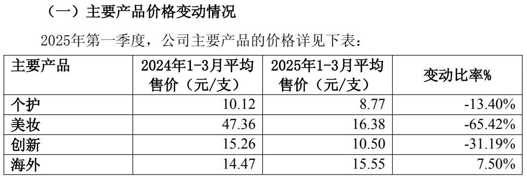价格方面,除包括汤美星等品牌的海外产品平均售价同比有所提升,个护、美妆及创新产品的平均售价均呈下滑趋势,分别同比减少13.4%、65.42%以及31.19%至8.77元、16.38元和10.5元,海外产品平均售价则增长7.5%至15.55元。对此,上海家化指出,美妆产品平均售价同比下降,主要受佰草集部分产品降价及清理库存的影响;创新产品平均售价下降主要受部分品牌清理产品线的影响。