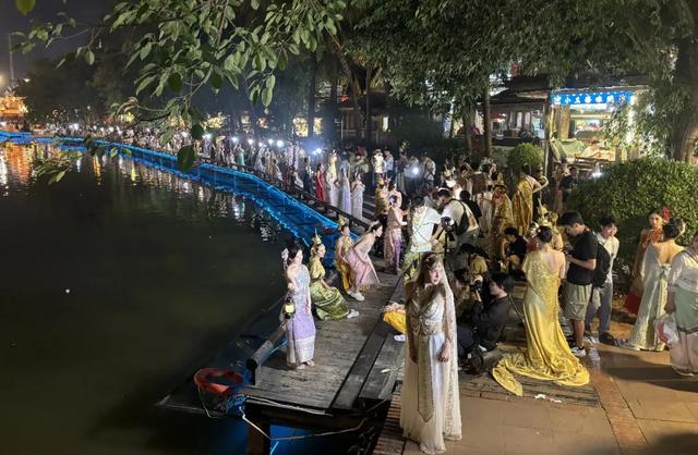 西双版纳告庄西双景景区内的旅拍游客。王梦瑶 摄