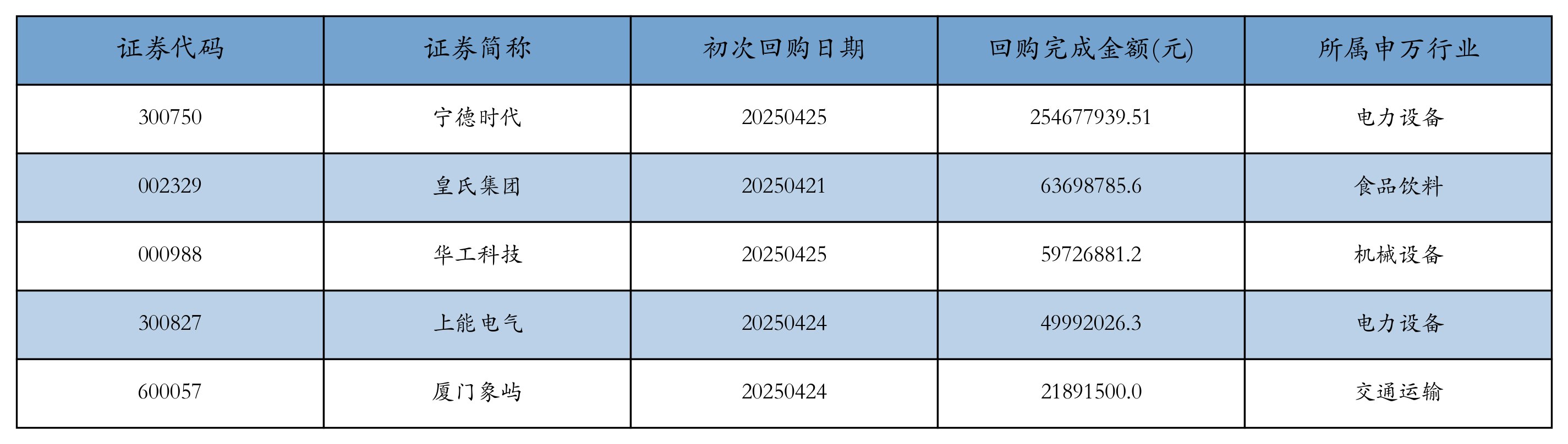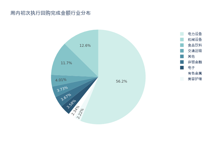 按照初次执行金额所在不同行业分布,金额最高的3个行业分别为:电力设备、机械设备、食品饮料,详情见下图: