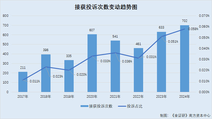 显然,自2017年以来,网龙的接获投诉数量呈上升趋势,2024年达到702次。