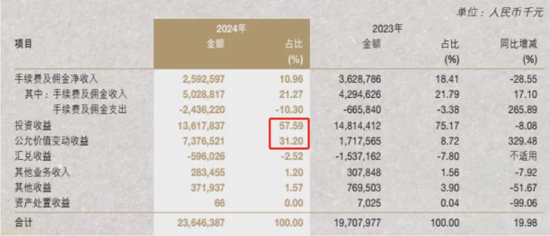 在2024年收入构成中,南京银行利息净收入同比增幅4.62%至266.27亿元,而非利息收入同比明显增幅近20%至236.46亿元,几乎要“旗鼓相当”了。