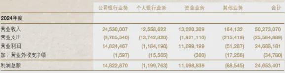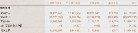 2024年,南京银行公司银行业务贡献营收245.3亿元,总利润148.2亿元,同比均有增长;个人银行业务贡献营收125.6亿元,总利润亏损近12亿元,陷入增收不增利且巨亏的境地,背后是营业支出137.42亿元,同比大增41.3亿元。