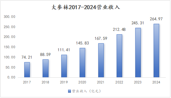 得益于公司灵活稳健的经营策略,自2017年上市以来,大参林业务规模持续增长,营业收入由2017年的74.21亿增长至2024年的264.97亿,复合增长率达19.94%;归母净利润从2017年的4.75亿元增长至2024年的9.15亿元,复合增长率达9.82%,稳居行业头部阵营。