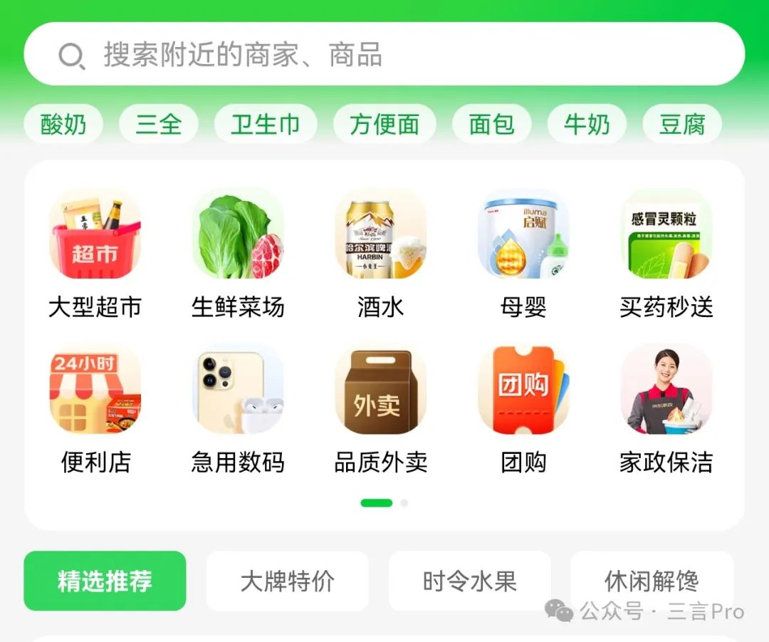 京东到家在京东App上方有专门入口,无需手动搜索即可进入。