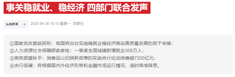 事关稳就业、稳经济,四部门联合发声!接下来政策会发力的五个方面:支持就业、稳定外贸发展、促进消费、积极扩大有效投资、营造稳定发展的良好环境。玉渊谭天:一些增量政策将在6月底前推出。