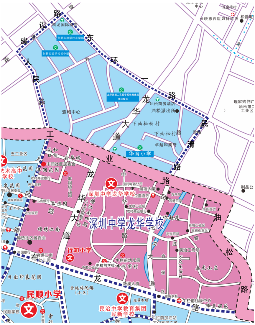 以安居华越龙苑为例,项目被划入深圳“四大名校”之一的深圳中学龙华学校(含小学部、初中部),并且属于优先级最高的“单片学区”。
