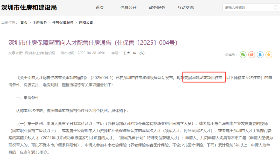 更多详情可阅读《深圳市住房保障署面向人才配售住房通告(住保售〔2025〕004号)》: