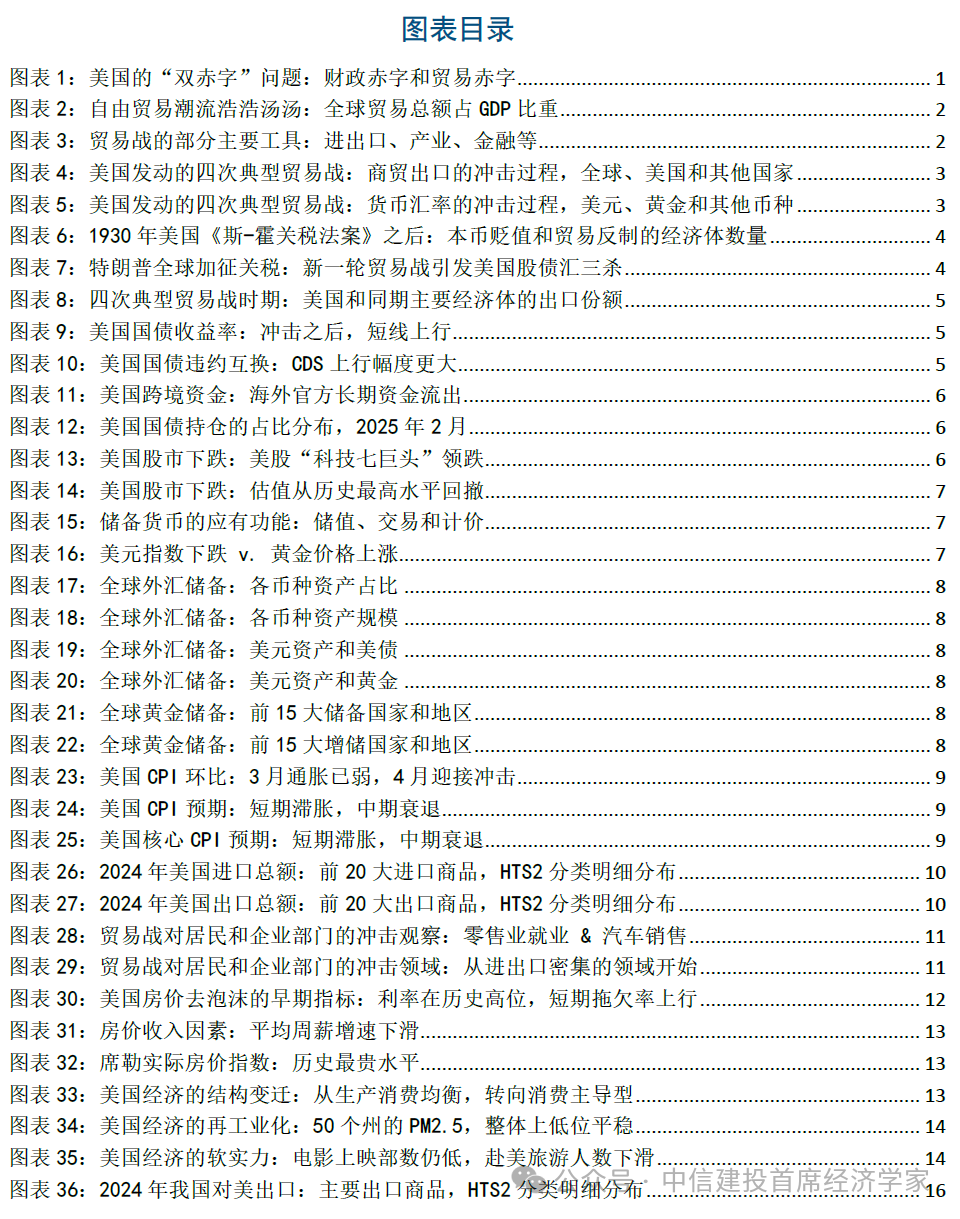 贸易赤字只是表象,互利共赢才有出路。斯-霍关税、尼克松冲击、广场协议和特朗普关税均对美国的经济和市场造成巨大冲击,并部分外溢到全球;本轮美国对贸易伙伴加征关税,引发美国股债汇三杀。