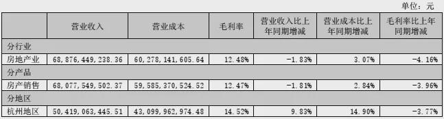 其中,占营收72.91%的杭州地区毛利率14.52%,同比下滑3.77%,而整个浙江地区包括杭州、金华和宁波3个城市,营收贡献合计占比高达89.34%。