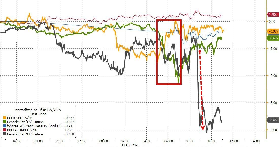贸易谈判的希望连续第二日力撑美股走高,抵消了一季度美国经济陷入萎缩引发的担忧冲击,助美股在4月收官日盘中大翻盘。OPEC+主力减产国沙特传出政策转向的暗示,国际原油大跌,加剧了全月跌势。