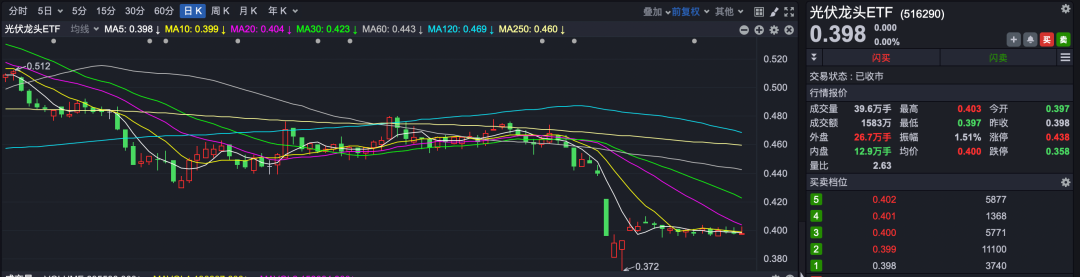 跌幅榜:光伏相关ETF全线回调