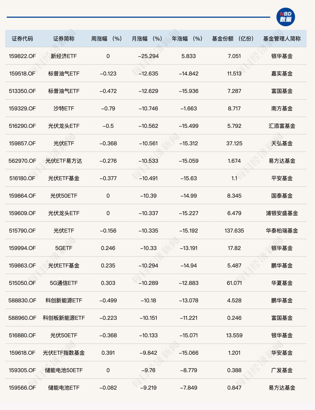 4月ETF跌幅榜上,光伏相关ETF全线回调。