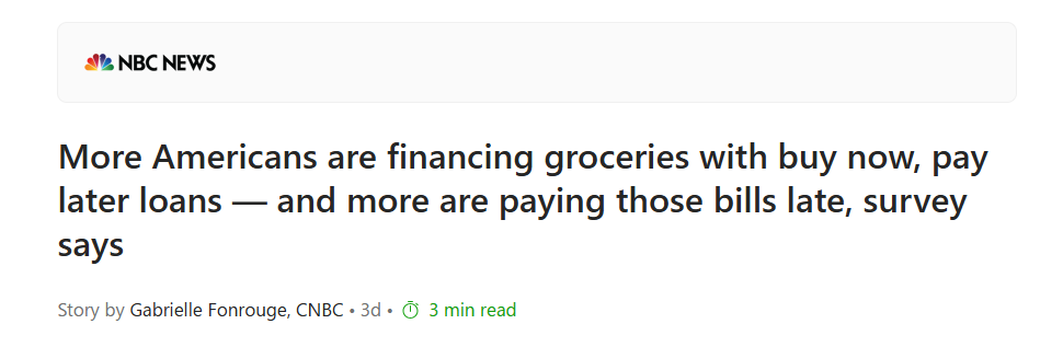 不只是音乐节门票这种“奢侈”消费,美国人去超市买菜都要分期付款了。