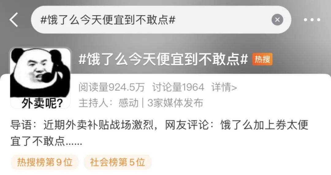 其“势头”背后, 自然是不计成本的投入和补贴。但这些手段在经历了上一轮外卖大战的美团和饿了么眼里,也应该早已司空见惯。