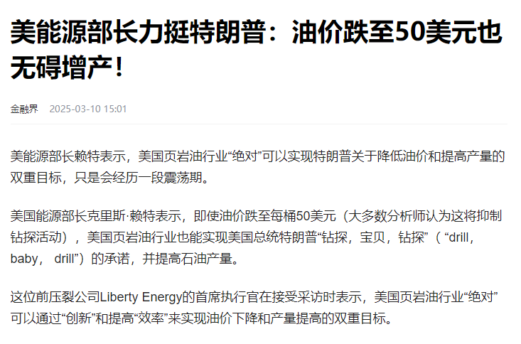 尤其是沙特,底气特别足。因为沙特石油开采成本非常低,2024年略有增加也才3.53美元/桶;而美国页岩油开采的平均综合成本为30美元/桶,只有少数企业更低一些。
