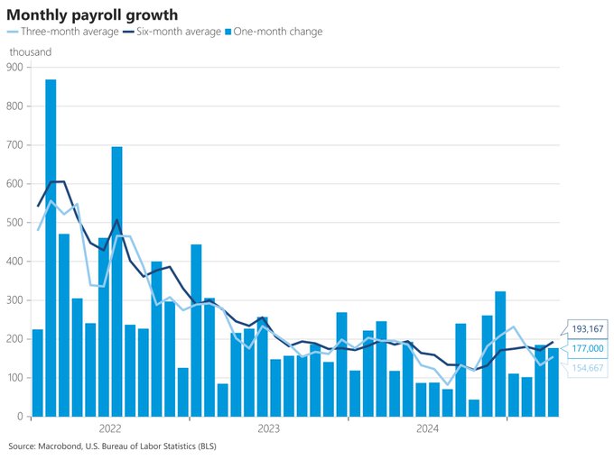过去六个月,美国经济平均每月新增就业岗位193,167个。