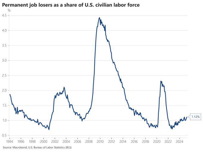 4月份永久性失业人数190 万,创下周期新高,占民间劳动力的1.1%。