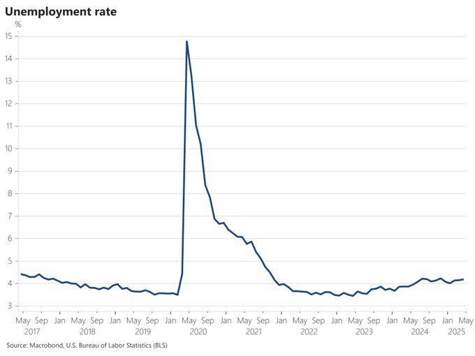 Timiraos在X平台上发表的推文提到,按未四舍五入计算,4月份失业率为4.187%,3月份为4.152%。