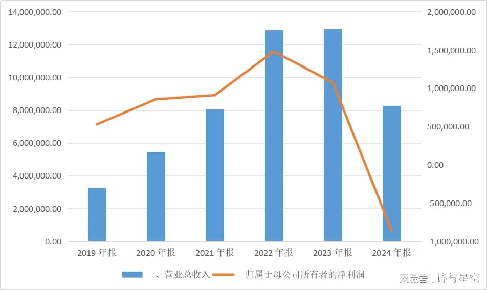 2024年,隆基绿能实现营收825.82亿元,同比减少36.23%,归母净利润-86.18亿元,同比减少180.15%,扣非后净利润-87.47亿元,同比减少180.74%。