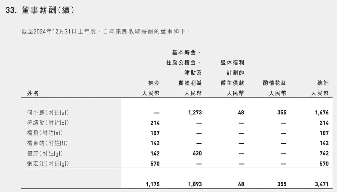 小鹏汽车的财报显示,2024年小鹏汽车董事长何小鹏年薪为167.6万元,略高于2022年的159.5万元。