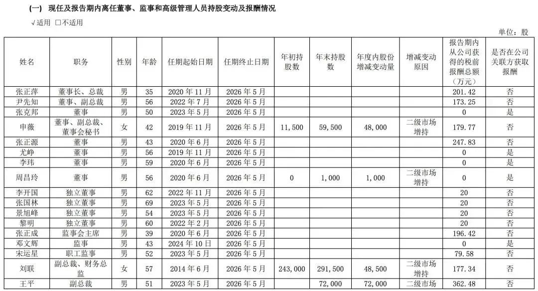 赛力斯集团董事长张正萍为201.4万元。