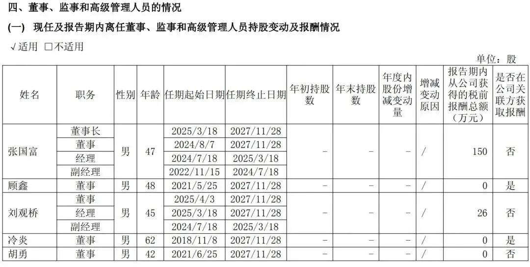 北汽蓝谷董事长张国富为150万元,