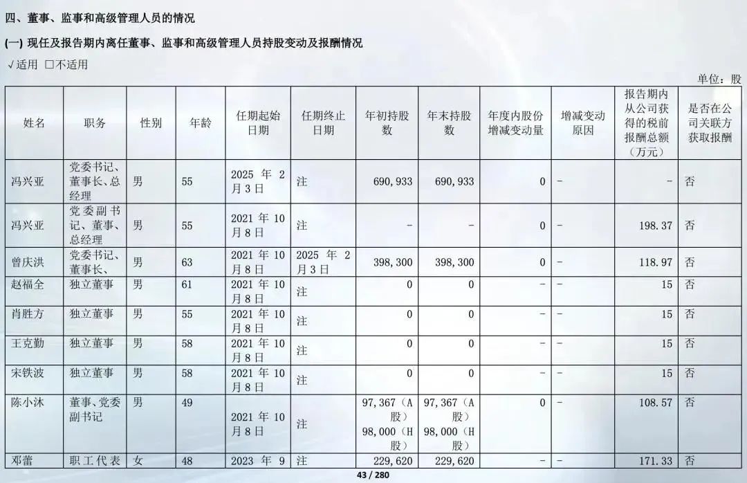 此外,国有汽车集团董事长2024年薪酬普遍集中在100万元至300万元之间。