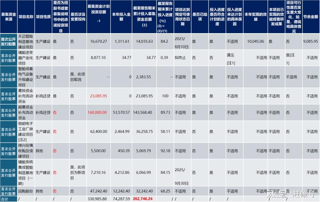 在公司承诺投资项目中,有一个计划投资8877万的“储能逆变器产业化项目”,拖到了2024年才开始投入,投了多少钱呢?不到35万。