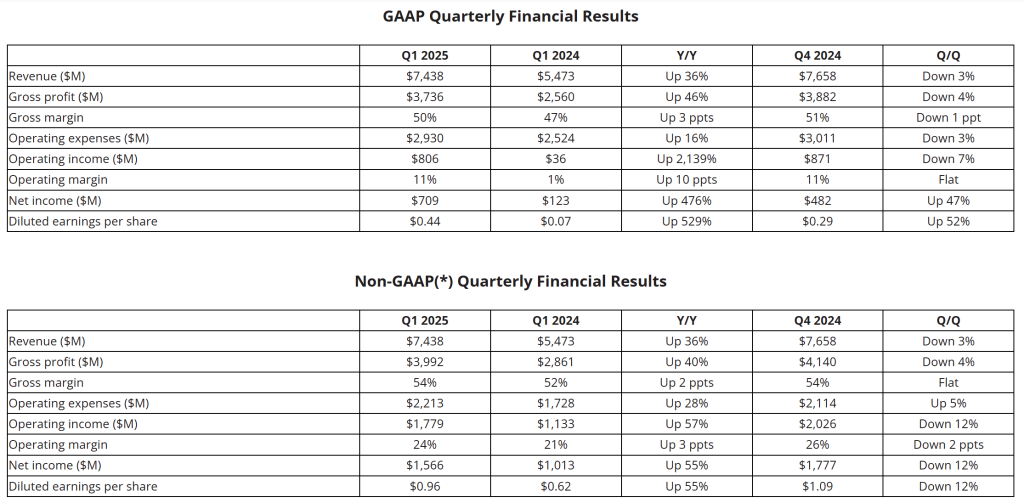 AMD董事长兼CEO苏姿丰表示:“我们在2025年迎来了强劲开局,同比增长已连续第四个季度加速。尽管宏观和监管环境不断变化,但公司第一季度的业绩和对第二季度的展望凸显了我们差异化产品组合的实力以及一贯的执行力,使我们能够在2025年实现强劲增长。”
