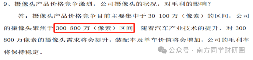 2、产品看点:作为核心收入来源的车载摄像头,其收入占比较上期提升了5%,而且车载摄像系统综合毛利率较高,表现较为稳定;