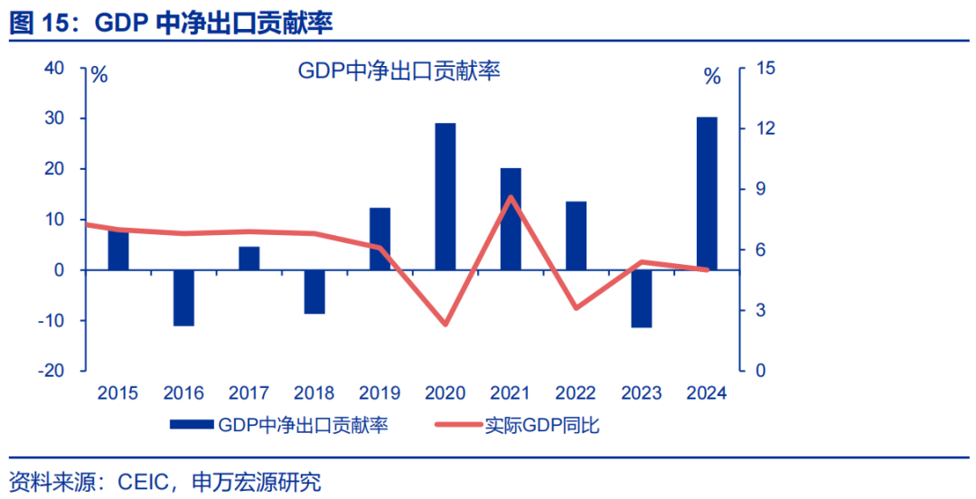 2025年外需支持力度会有所减弱,扩内需成为首要任务。2024年经济各领域中,内生性表现最为强劲的是出口与制造业投资,尤其是四季度。但来到2025年,发达国家补库临近结束加之关税扰动,出口压力或有所增大;且制造业内生性更新周期结束,或也带动制造业投资边际降温,2024年最强的需求领域面临弱化风险。与此同时,靠增加负债驱动投资高增支撑经济的模式并不可取,产业政策也在强调发展要防止“内卷式”恶性竞争,意味着从总量到行业都不支持再有类似“四万亿”政策刺激。