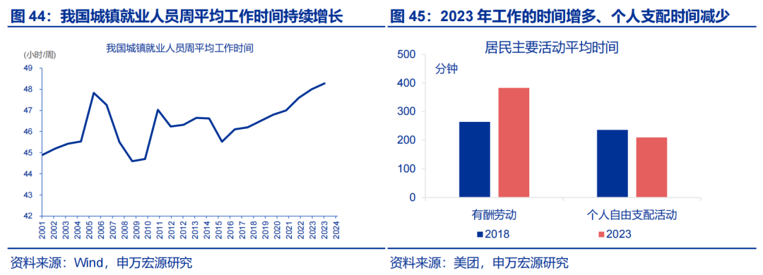 此外,除提供优质消费产品外,闲暇时间或亦是服务消费必不可少的要素。近年来居民工作时长明显增多,2023年日均有酬劳动时间为6小时23分、较2018年增加119分,完善休假制度有助于释放服务消费需求。具体制度方面,可进一步优化法定节假日和带薪休假制度的安排,鼓励企业落实带薪休假等政策,或有助于推动居民有充足的闲暇时间进行服务消费。而2024年11月推出的《全国年节及纪念日放假办法》已提出自2025年1月1日起假日增加2天。