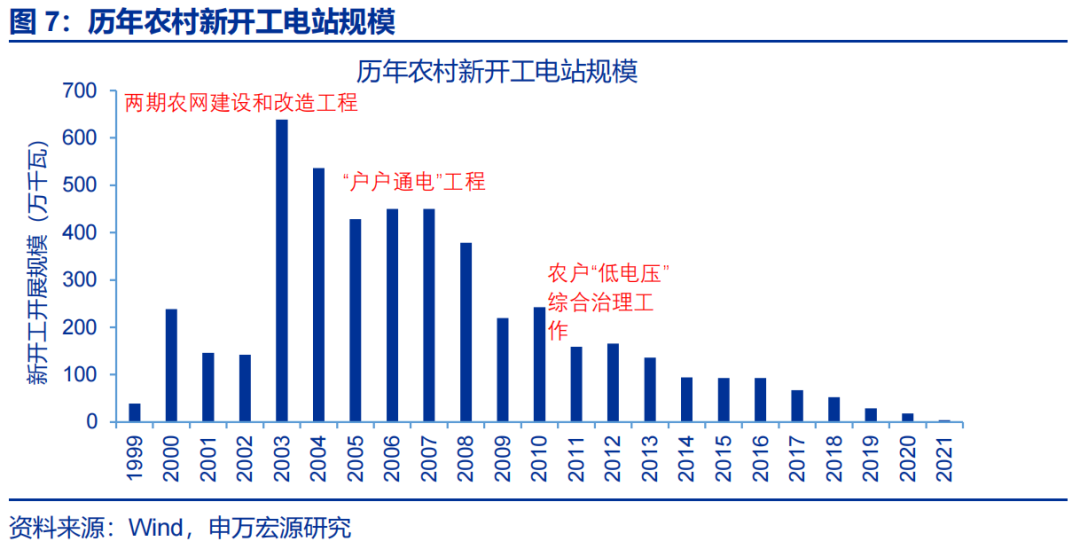 首轮“下乡”政策效果显著,既与央地财政共同补贴有关,也得益于基础设施完善。据商务部披露,从2007年试点开始至2012年9月,中央和地方财政累计投入补贴资金765亿元,实现销售额6597.6亿元,财政乘数达8.6。除央地共同补贴外,首轮下乡政策效果显著也受益于前期持续数年的基础设施完善。1998-2004年,两期农网建设和改造工程历时6年,国家共投入2100多亿元,架设低压电线344万公里。2006年,国家电网公司、南方电网公司推行了以大电网延伸为主的“户户通电”和无电户通电工程。截至2008年底,国家电网和南方电网分别解决416万、16.6万无电人口的通电问题,为后续家电下乡政策全国推行奠定电力设施基础。