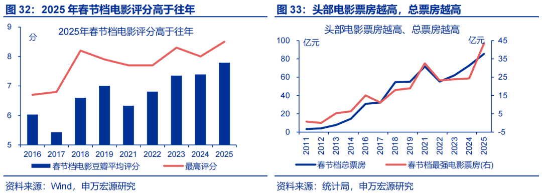年初《哪吒2》爆火进一步反映,如果有效供给增加,也会带动增量需求。传统消费往往是“量增价降”的格局,但服务消费尤其是新消费往往是“量增价增”,说明需求被有效供给不足约束,如果有效供给增加,也会带动增量需求。年初电影《哪吒2》凭借8.5分的豆瓣高分吸引2.5亿观影人次,对总票房贡献高达45.7%;反映供给质量是需求释放关键,有效供给具有显著的需求创造效应。