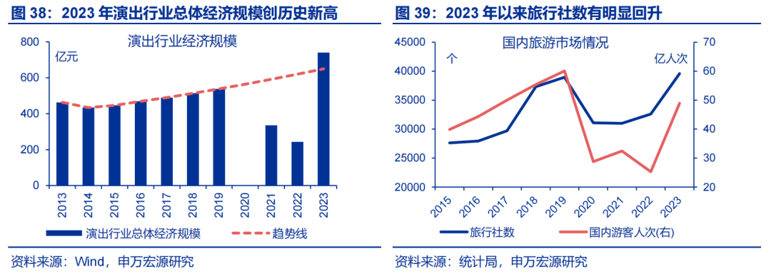 当前服务供给边际改善已产生显著的“供给创造需求”效应,而服务消费修复仍有较大空间,后续促消费政策或可扩围至服务领域。当前服务消费偏弱的领域集中在文体娱等生活性服务业,上述行业注销企业数与增加值表现均相对较弱。但边际上看,部分服务消费供给边际改善时,相关行业消费迎来回升;如2023年演出行业经济规模较2019年提升37.5%、超过历史趋势。旅行社数量边际抬升21.4%,带动团游人数明显提升。结合2025年春节期间文旅、电影等服务消费热情高涨,全国层面促消费政策可扩围至服务消费,如对地方的专项转移支付支持,直接或间接优补贴质服务产品。