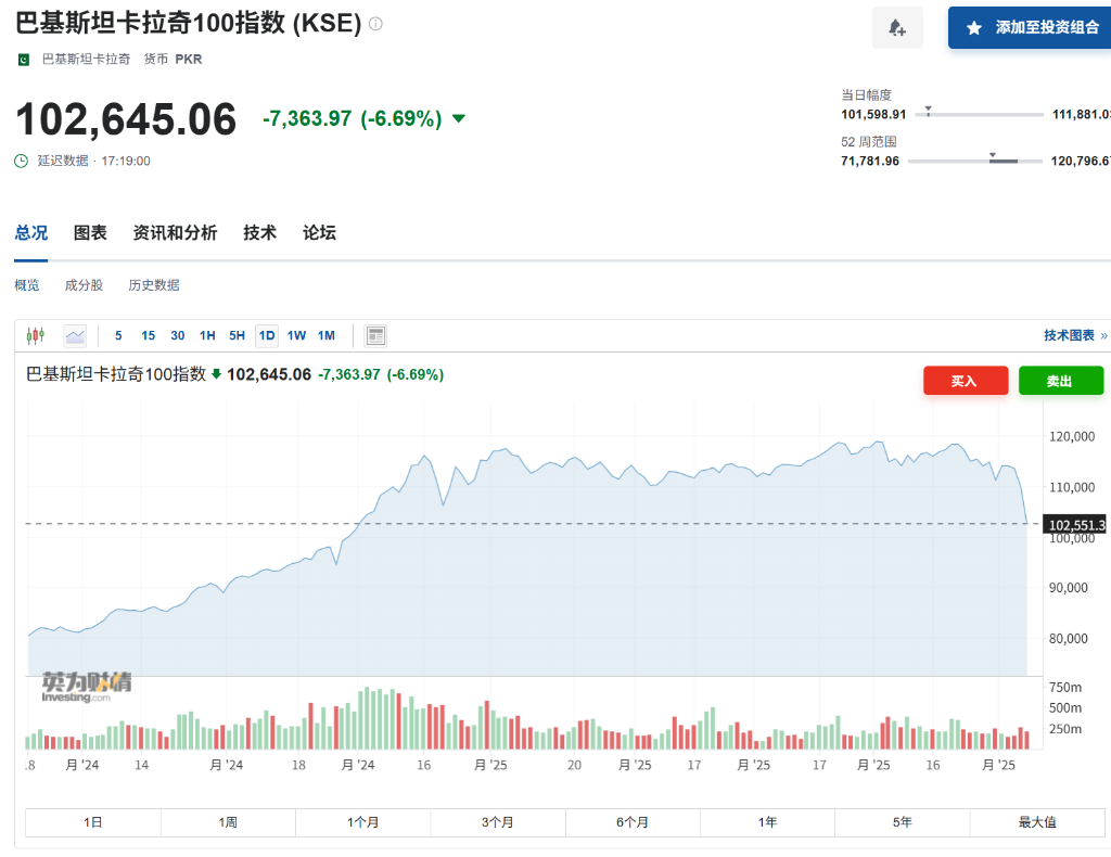 5月8日,巴基斯坦KSE-100指数下跌7.1%至102208.40点,巴基斯坦KSE-30指数跌幅扩大至8.8%,为2008年以来最大跌幅。此前巴基斯坦证券交易所的交易暂停一个小时。