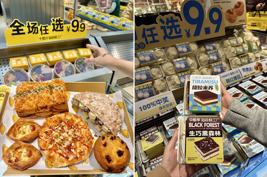 有的则是主打“烘焙工厂”的模式,主打全场9.9元任选。年初,内参君在《烘焙界的“赵一鸣”们,涌进县城》一文中提及,在宜春、洛阳、青岛、张家口等非一线城市,如十豆川超级糕工厂店、大豫人家超级烘焙工厂店等一大批烘焙工厂店正以燎原之势迅速铺开。