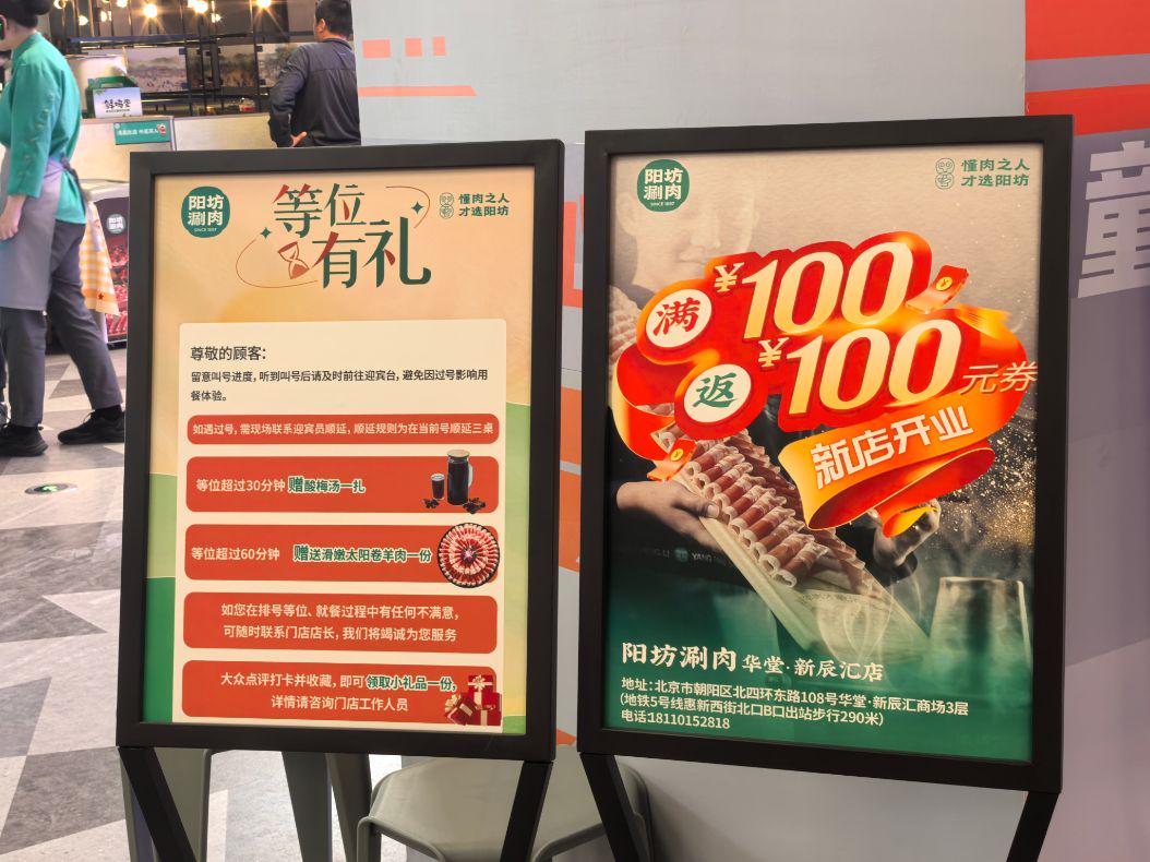 阳坊涮肉开业期间推出“满100返100元券”的活动。
